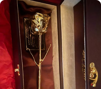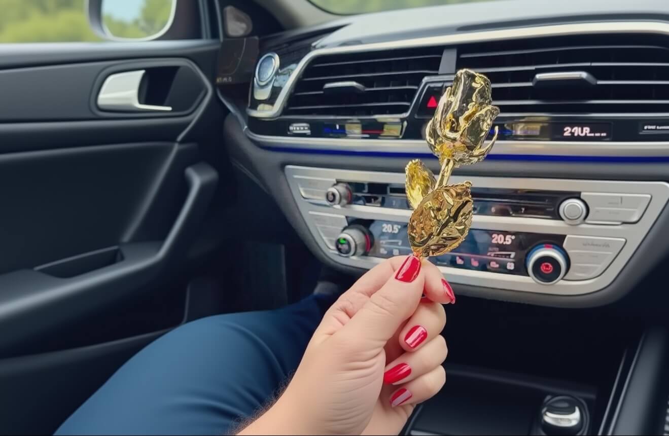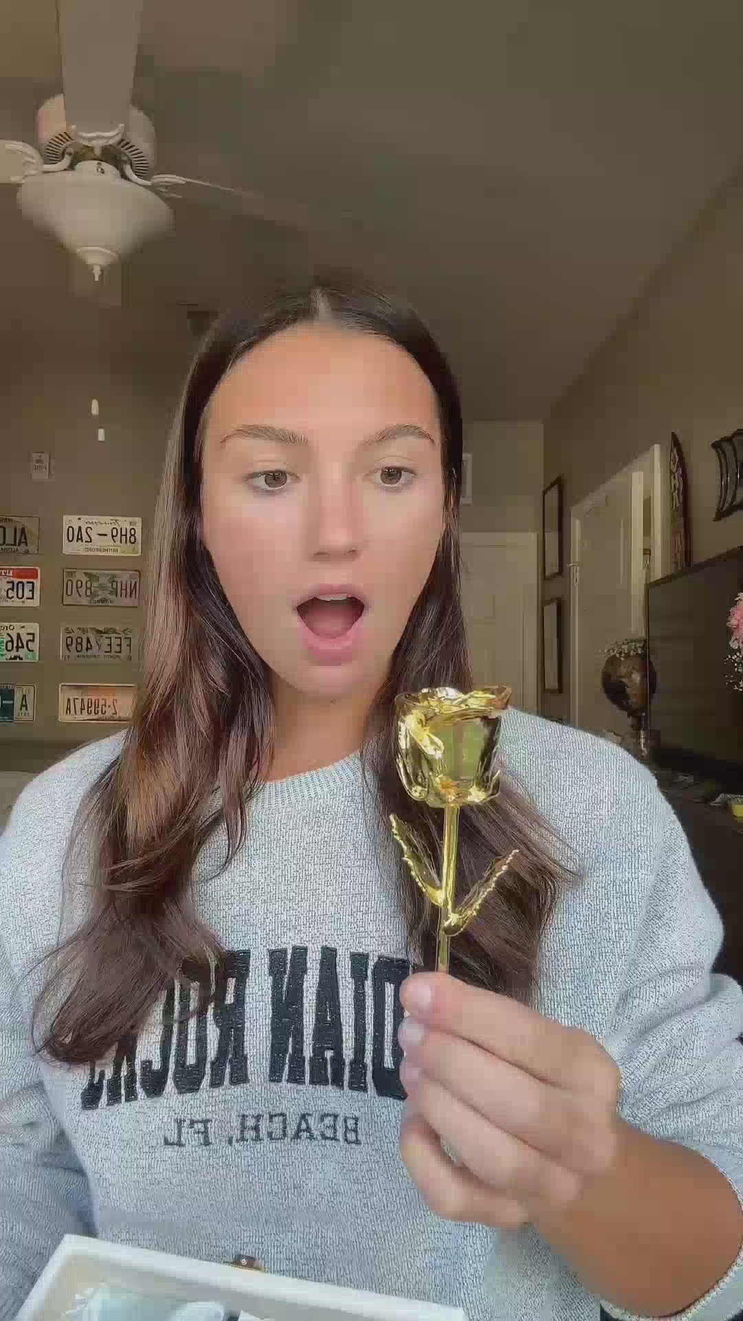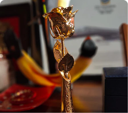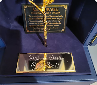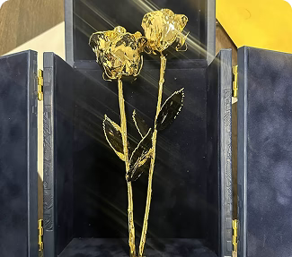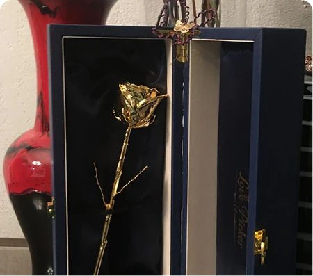 Elegant 11.5-inch gold-dipped vase for preserved roses. A timeless anniversary gift that shines with love and lasts for years.